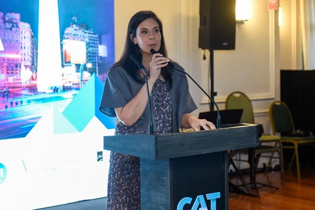 La presidente de la CAT comenzó agradeciendo a su antecesor, Gustavo Hani, “con quien compartimos el mandato de este 2025 y con quien llevé adelante su gestión durante 4 años como Secretaria. A todo el equipo de la Secretaría, a todos los integrantes del Consejo Federal del Turismo. Acá están muchos de los ministros representando a cada provincia con los que continuamente articulamos para cada una de las provincias. A nuestro gran anfitrión, a Valentín Díaz Giligan, quien hoy nos recibe en este marco hermoso en la ciudad de Buenos Aires con su doble rol como presidente del Ente y como presidente del Consejo Federal de Turismo. Por supuesto a cada uno de los socios activos integrantes de la CAT, a la prensa, a quienes quiero agradecerles especialmente el acompañamiento y que siempre le dan visibilidad a las noticias de nuestro sector, y al equipo de la Cámara Argentina de Turismo que trabaja todos los días".