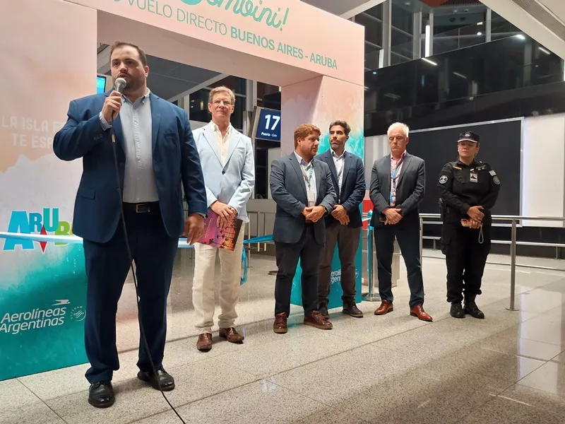 Representante de Aeropuertos Argentina dijo “es un orgullo poder participar de la inauguración de esta ruta a un destino tan icónico como lo es Aruba para para el turismo. Creemos que todo vuelo, toda nueva ruta, es una oportunidad para fomentar el turismo, para fomentar el intercambio de culturas, y para que cada pasajero que utilice esta ruta pueda disfrutar el aeropuerto, para que el aeropuerto sea parte de ese viaje también. Tengan todos un buen viaje”.
