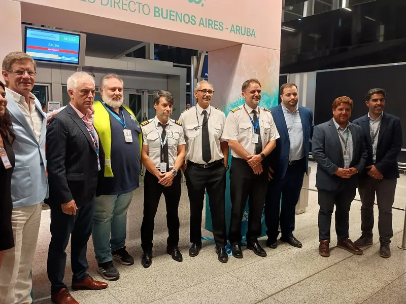 Este lunes 12 de enero en el Aeropuerto Internacional de Ezeiza se realizó la ceremonia que oficializó el inicio de los vuelos regulares de Aerolíneas Argentinas entre Argentina y la isla caribeña de Aruba, operatoria que se extenderá en principio hasta el mes de septiembre dado el éxito de ventas desde que se anunció su puesta en marcha.