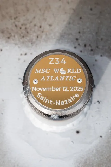 Ceremonia de monedas de MSC World Atlantic - Una ceremonia tradicional de monedas para MSC World Atlantic también tuvo lugar hoy, cuando las madrinas del barco tanto de la línea de cruceros como del astillero colocaron monedas conmemorativas dentro del barco como señal de bendición durante la construcción y para traer buena fortuna al barco. MSC World Atlantic entrará en servicio en 2027 y se desplegará en el Mar Caribe desde Puerto Cañaveral, Estados Unidos, para el invierno de 2027-28.