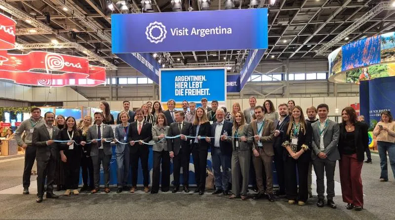 El presidente de FIT y FAEVYT, Andrés Deya, junto al vicepresidente primero de la Federación, Ezequiel Barberis, participaron de la inauguración del stand argentino en Berlín con autoridades del gobierno local, la embajadora de Argentina en Alemania, Betina Pasquali de Fonseca, representantes del sector privado-público de nuestro país y el acompañamiento de operadores turísticos y agencias de viajes presentes.