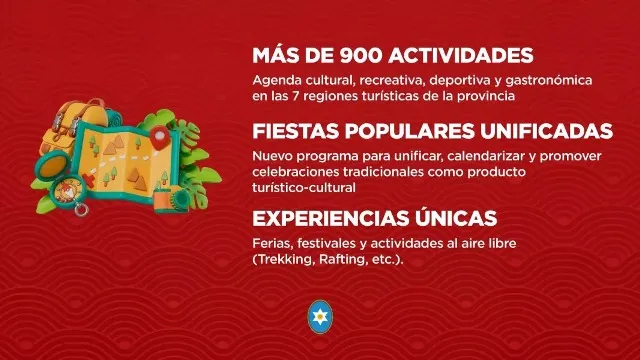 En un acto encabezado por la ministra de Turismo y Deportes, Manuela Arancibia que se realizó este jueves en el Mercado Artesanal, el Gobierno de la Provincia presentó la temporada de verano 2026 y dio a conocer el Calendario Turístico de Verano, una agenda que reúne más de 900 actividades culturales, recreativas, deportivas y gastronómicas programadas por los municipios de las siete regiones turísticas de la Provincia.