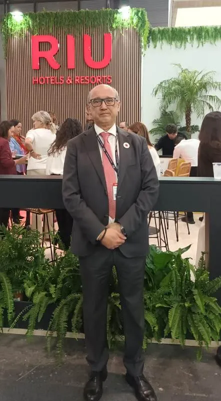 Senén Fornos Director General Comercial de Riu Hotels & Resorts comparte su experiencia en la feria Fitur, destacando que, aunque durante años su principal espacio de reuniones fue el Hotel Riu Plaza España en Madrid, han decidido volver a tener un stand propio en la feria para facilitar encuentros con clientes. El ambiente general de la feria es positivo, con agendas saturadas por la alta demanda de reuniones y un sentimiento de esperanza para el año 2026.
