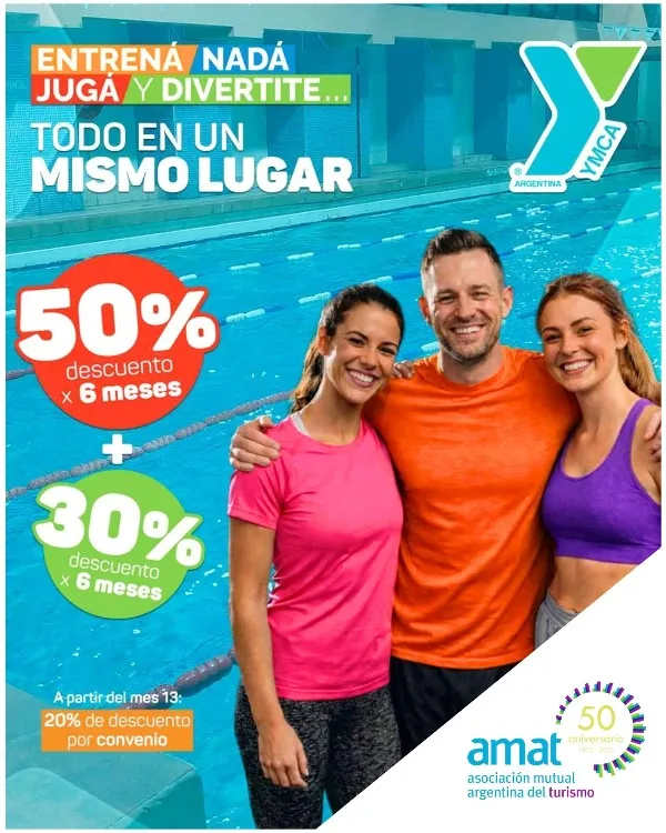 La Asociación Mutual Argentina del Turismo (AMAT) informó que continúa vigente el convenio celebrado con la Asociación Cristiana de Jóvenes (YMCA), cuyas propuestas están orientadas al bienestar integral.