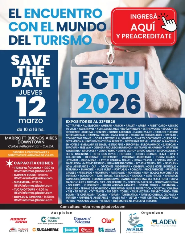 La esperada edición número 51 del Encuentro de Comercialización Turística llega con todo para marcar la agenda del turismo profesional en Argentina. Organizado por AVIABUE y Ladevi Medios y Soluciones, este clásico del sector será una jornada intensa de negocios, contactos y capacitación para agentes de viajes y profesionales del trade.
