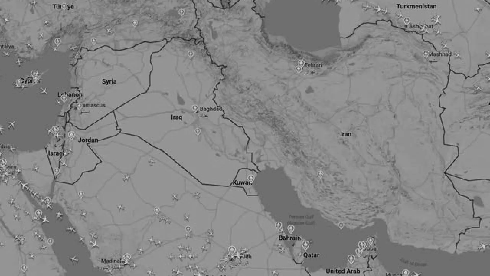 Turkish Airlines, por último, ha cancelado vuelos hacia y desde Baréin, Dammam, Riad, Irán, Irak, Jordania, Kuwait, Líbano, Omán, Qatar, Siria y Emiratos Árabes Unidos.