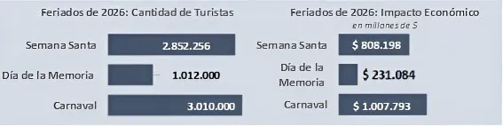 - Doble feriado. Este año, el 2 de abril coincidió con el Día del Veterano y de los Caídos en la Guerra de Malvinas, también feriado inamovible, lo que extendió el descanso y potenció el movimiento turístico, ya que el Jueves Santo no está contemplado como feriado nacional, sino como día no laborable.