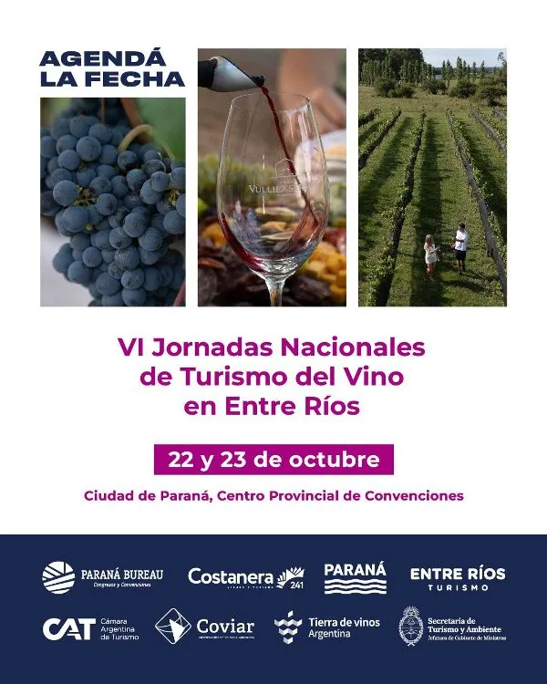 Entre Ríos será sede de las VI Jornadas Nacionales de Turismo del Vino, el principal espacio de encuentro del país para el desarrollo del enoturismo, que se realizará en la ciudad de Paraná, capital provincial.