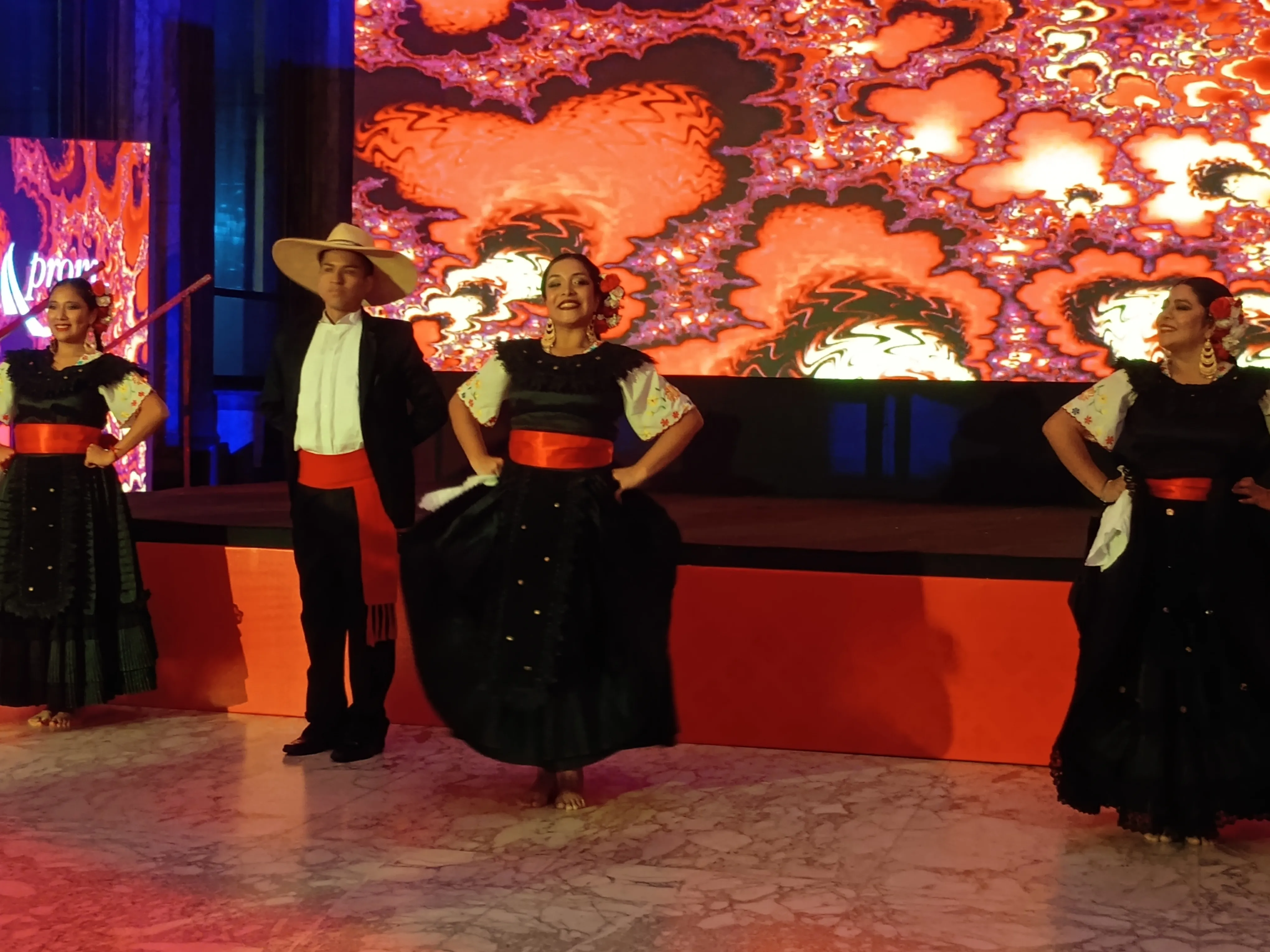 La velada tuvo un recorrido especial que incluyó a las 4 grandes regiones turísticas del país andino: Costa; Selva; Andes y Norte, a través de videos, una reinterpretación de la gastronomía típica creada por la chef del restaurante de cocina fusión, Osaka, Cindy Higuchi, y la danza del ballet Matices del Perú.